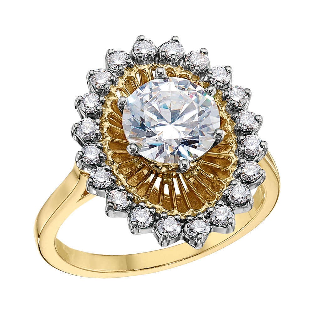 Jabel’s diamond cluster engagement rings are also set in a domed pattern. The doming was engineered by Jabel’s tool and die makers many decades ago to produce a better product. Previously, diamond clusters were set flat and required many prongs, which created dead spots in the ring’s luster. Also, the flat setting prevented light from naturally passing through the diamonds. Jabel’s domed settings corrected this problem. The doming allowed the diamonds to be nestled closer together, eliminating many of the prongs and allowed light to naturally pass through the stones, illuminating their brilliance. Jabel’s diamond cluster engagement rings are engineered for beauty!