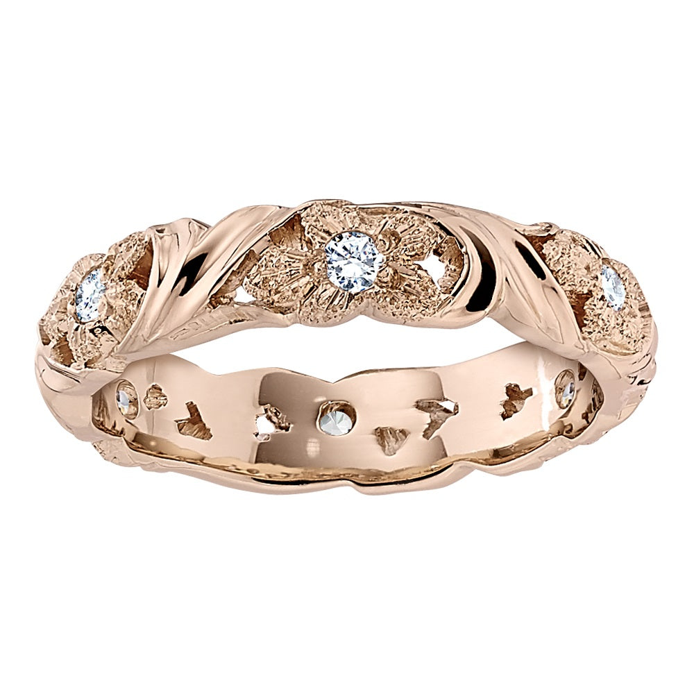 At Bella's, our wedding band collection is crafted in an array of designs platinum, 18KT yellow or white gold, and 14KT yellow, white, and rose gold. Bella’s also offers Jabel’s signature pink and green gold rose carved vintage style gold bands, both with and without diamond accents. The collection includes Jabel’s heirloom quality die struck designs, as well as price point friendly and stylish designs by David Connolly.